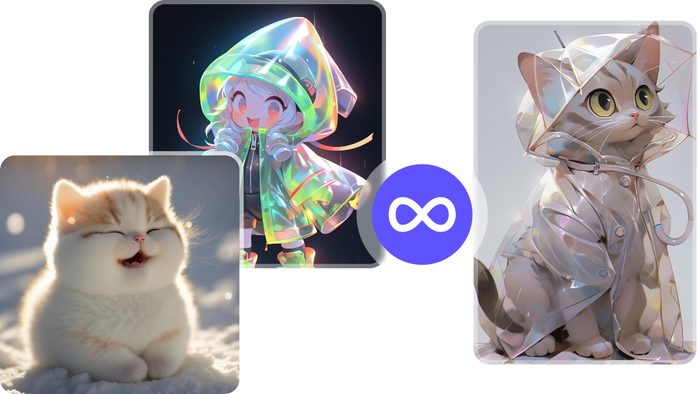 Il mixer di immagini AI gratis combina rapidamente due immagini, ma puoi anche unire più foto contemporaneamente! Basta perdere tempo, usa il nostro image mixer AI per efficienza e versatilità.
